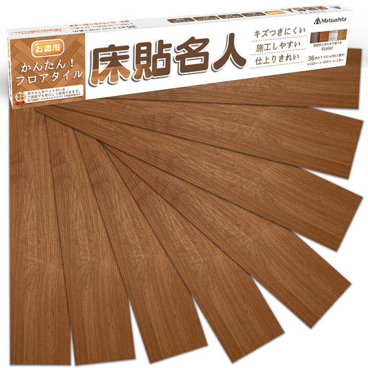 床貼名人 【DIYのプロが監修】フロアタイル 12枚入 (1畳用) かんたん施工 貼るだけ 接着剤不要 フローリング ペット対応 リノベーション DIY 日曜大工